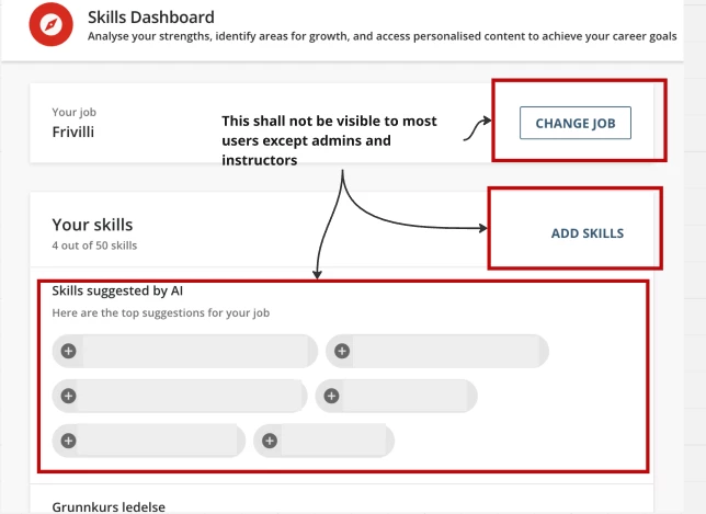 In Docebo as I see so far, every user, both regular and super users can add skills and job themselves at the Skills Dashboard. In our solution, we only want to assign that possibility to certain roles. Regular users should not be able to do it themselves; only admins and certain roles will have to do it for them. But I can’t find anything in the settings making us able to restrict the ‘add skills’ and ‘add/change job’ to certain roles. Someone who knows how to do it or have dealt with the same issue before?