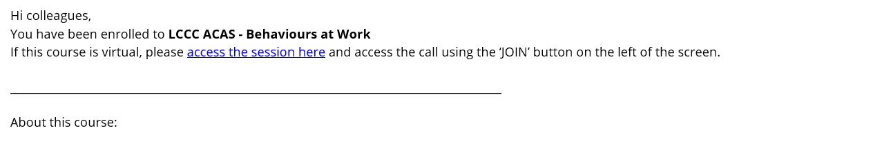 Hi, we’ve recently set up automated calendar invites to go out to people who sign up to courses.