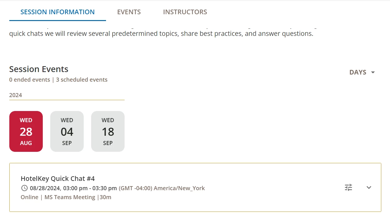 We have built this as a learning plan that contains a series of ILT classes. Each ILT is for a single webinar. So students only have to enroll in one class and then they can see a list of both the recorded and upcoming webinars. In the ILT’s we have a single session with a single event that ties to a teams meeting. After the webinar is completed we post the recording. So once a learner is in the session they get credit for either live attendence or viewing the recording. We use a badge that a student earns once they have completed at least 4 webinars. THis makes it easy for them and reporting easy for us.