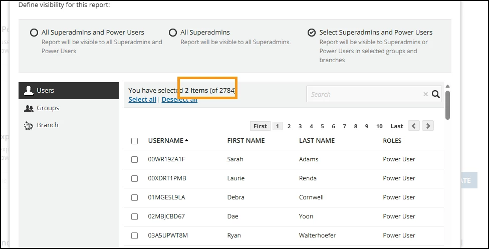 If I created an ad-hoc report under Legacy reports and applied a filter to allow select super admins and power users to have visibility, how can I find out who I gave those permissions to? Docebo only tells me how many people have been selected but short of going through every single learner listed, there is no other way for me to know who has visibility to the report I shared.