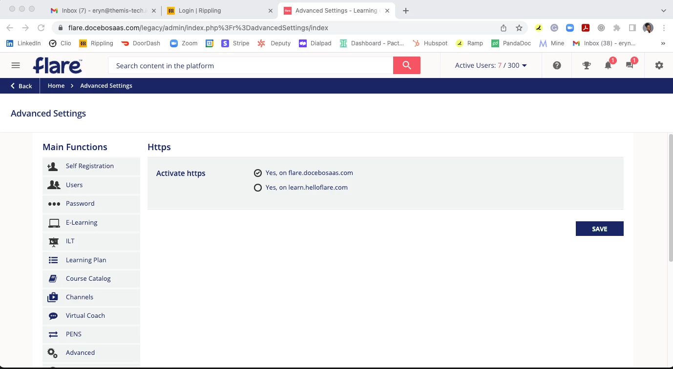 - Activating and Managing the HTTPS App but I confirmed that the URL we set up that redirects from our HRIS for single sign-on is the same domain we have on our backend.