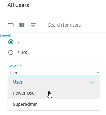 The way I do this is with two tabs open, one with the Power User List (filter by Profile) and you can go to user management filter by Level - PU. It’s manual, but can help you spot check in a pinch.