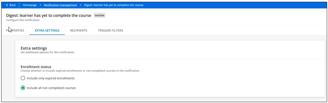 In trying to build the automated notification, it includes all non-completed courses, even the locked. is there a way to get around this?
