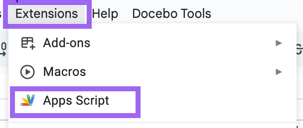 Go back to the sheet and refresh the page. You should now see a Docebo Tools menu. -