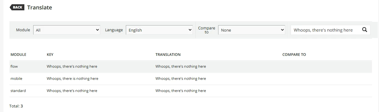 We would like to update the “Whoops” text when there is no longer training assigned to a learner. However, when I go to the Localization tool to change the language, I see 3 options: Flow, Mobile, and Standard. I’m assuming I know what Mobile and Standard are, but what is Flow? What will be impacted when I change that language?