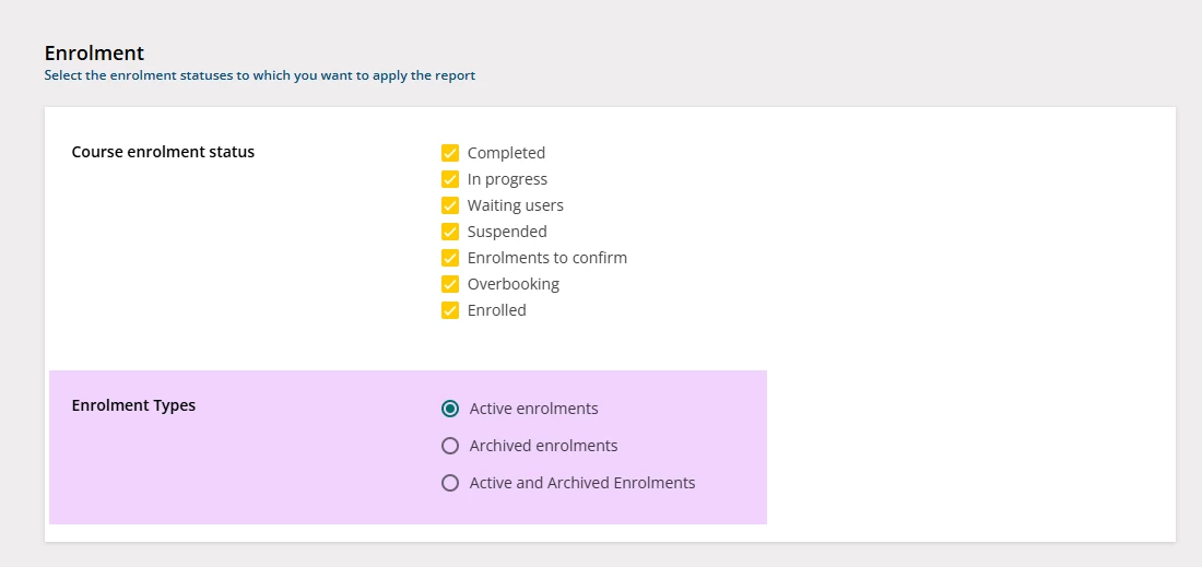 Enrollment Type choices being Mandatory or Optional and a few others..