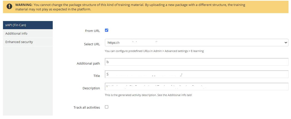 I am looking for practical cases of people who have experienced the creation of courses with xAPI content (TinCan) via URL.