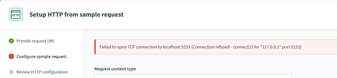 I have added sendhttp request action.trying to call get request with baseurl. but getting the below error