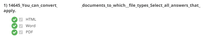 When looking at a learners report, it will just indicate a reference number without showing me the question asked or responses (example below):