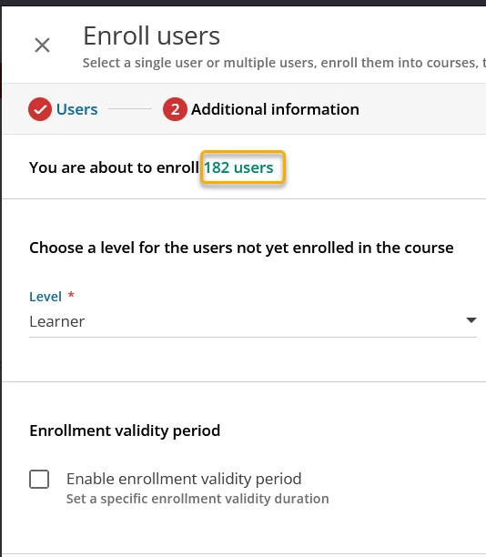 My math gets me to 102 users that I will be enrolling (except if they have already mapped themselves to the course).
