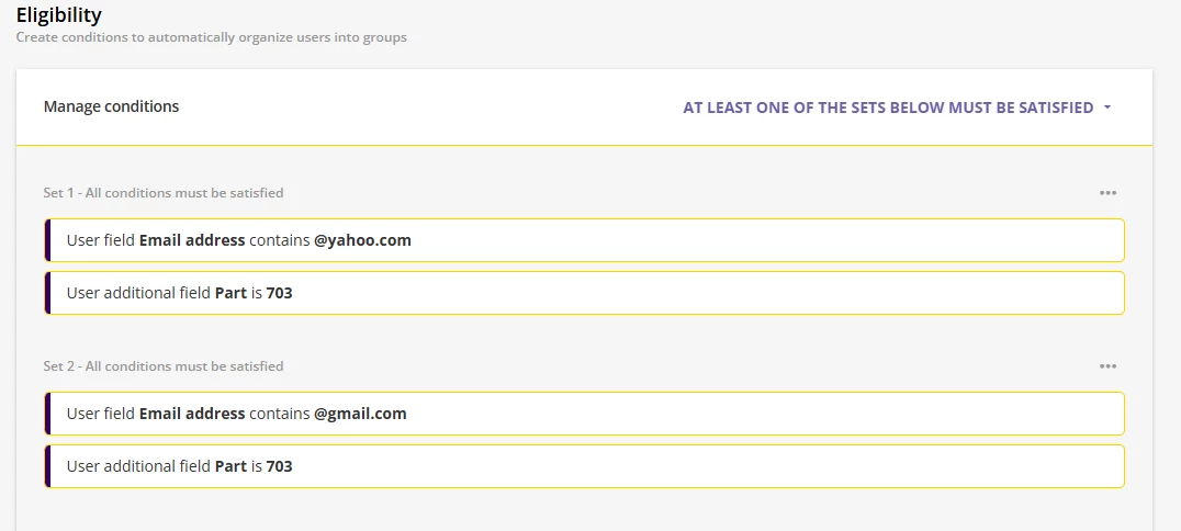 I’m trying to set up an automatic group based on 2 conditions: