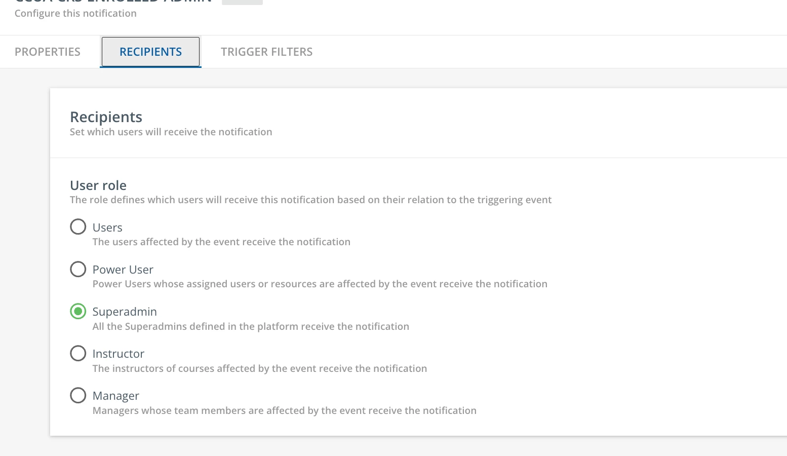 @lrnlab I guess that’s where I’m not understanding. Of course I can use a group as a trigger for a notification, but my only recipient options are superadmin, user, power user, and instructor. I don’t see any option to make the recipient a group, so I don’t see how putting a superadmin in one would help?