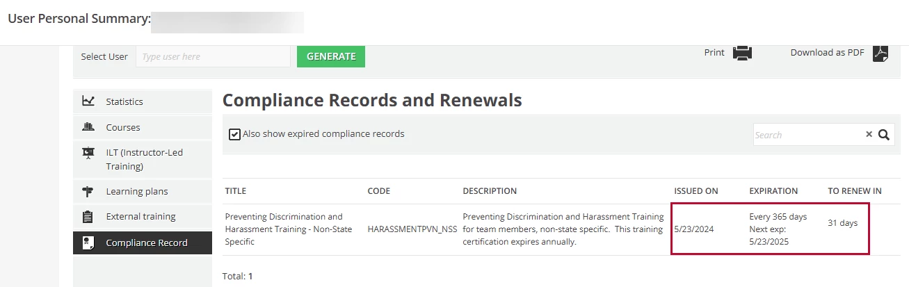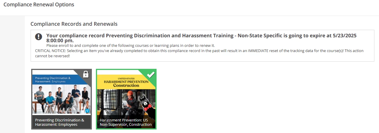 We recently started using the Certification and Retraining area more extensively. We have several Certs set up for Anti-Harassment Training (different certs for employee vs manager and state specific options), which were set up in February. I manually uploaded certification records for those who had prior valid completions in early March, so that they would get notifications of their upcoming expirations starting in April and beyond. I created a brief procedural training explaining how certifications work, and what to do to renew them.