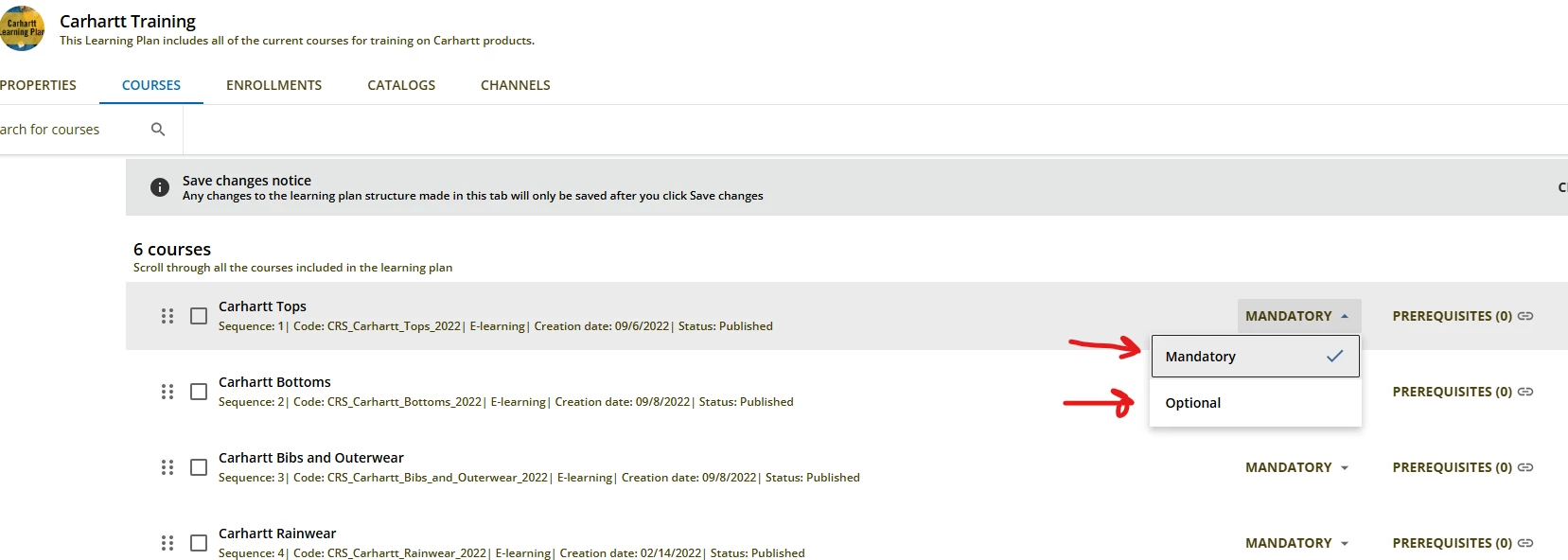 Choice of elearning in a course or learning plan