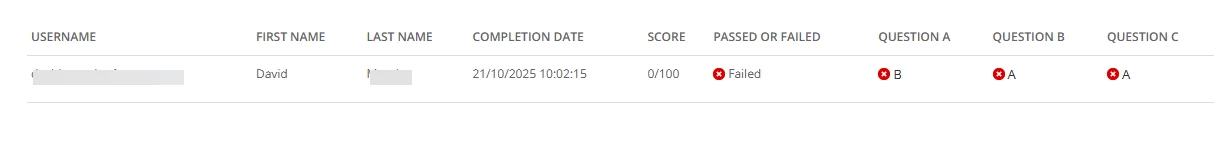 For any organisation running dozens or even hundreds of compliance assessments, this creates a significant administrative burden. You would effectively need someone exporting CSVs from every individual course and combining them manually each time a consolidated report is required. It is not scalable.