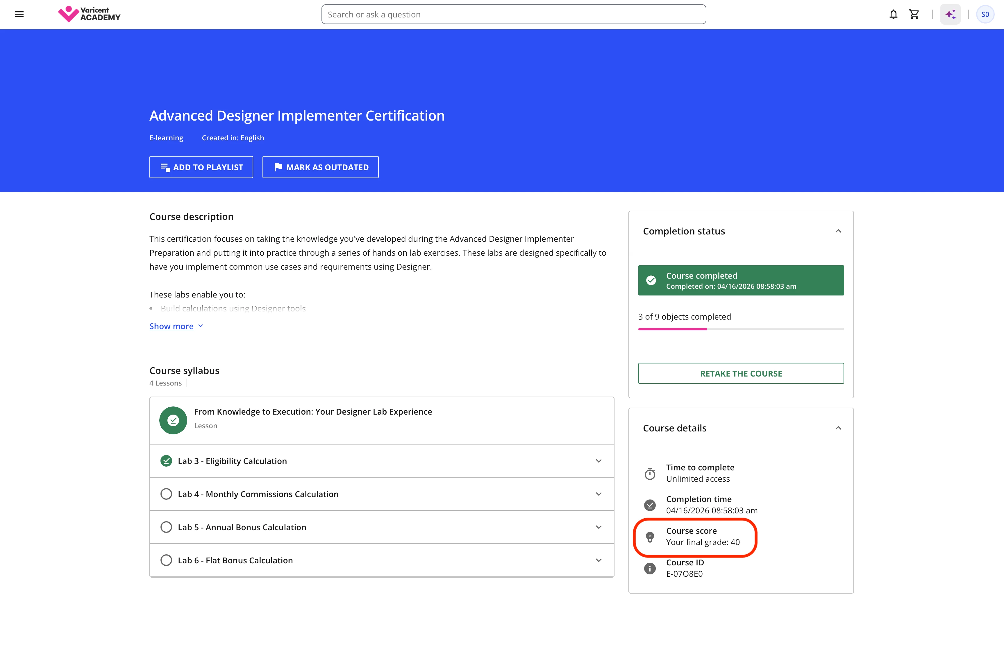 - Each test has a numerical score (in this example, one course you have to get 3 out of 4 questions right, another you have to get 5 out of 6 questions right).