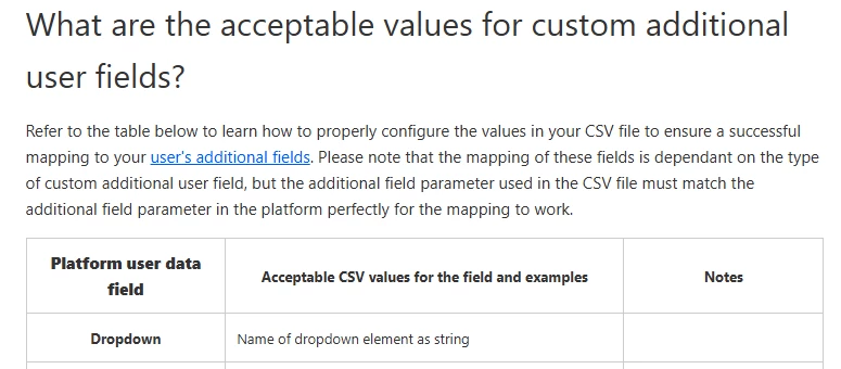 I have a new user additional field that was just added to my platform, and I need to assign a value for that field to over 350 users. I know that this can be done via CSV but can’t find any actual instructions about how to accomplish this. The closest thing I can find is the “Importing and managing users via CSV files” knowledge base article, which says that the user additional field can be entered as a string: