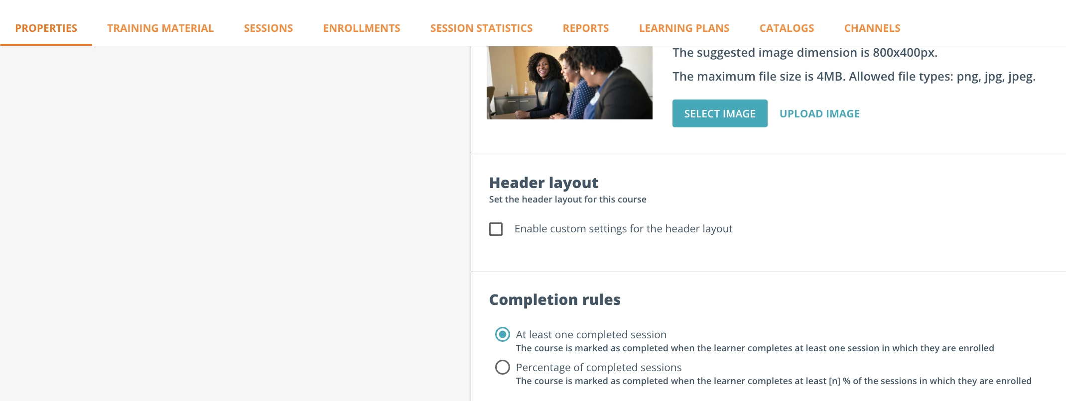 Course: At least one completed session