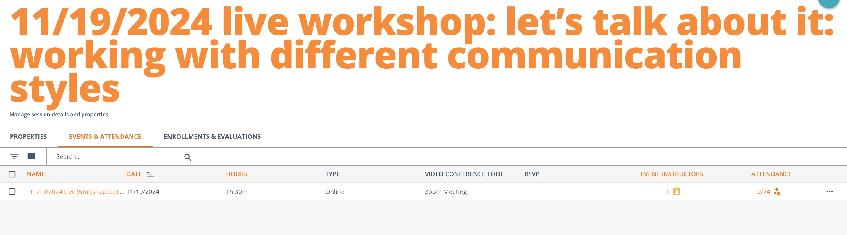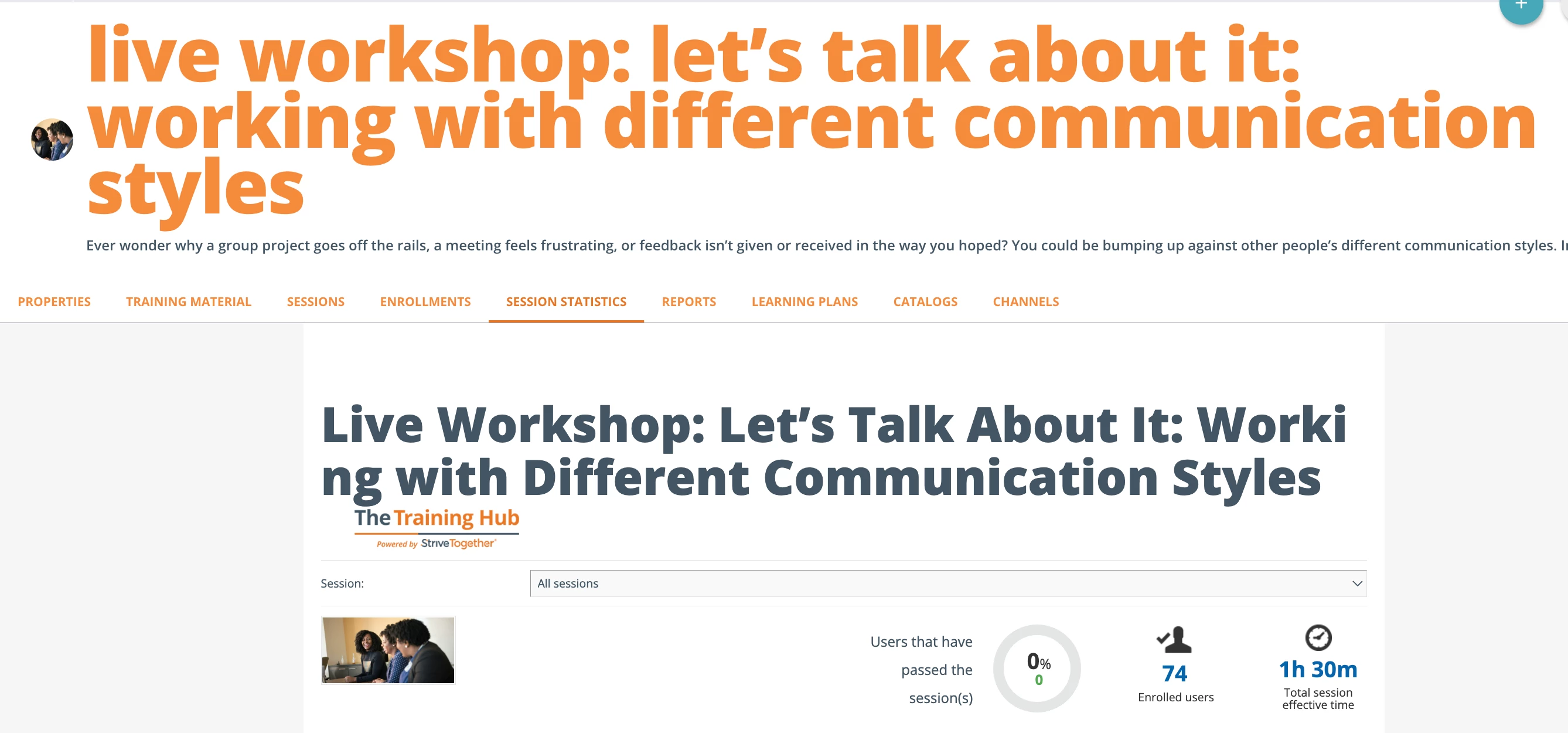In the images attached you can see an example of a workshop with 74 enrollments and 0 completions. I attended that workshop, and there were quite a few people there.