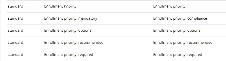 We would like to start using the Enrollment Priorities to highlight our compliance training (and make it easier to find). The current options under enrollment priorities are Mandatory, Required, Recommended, and Optional.
