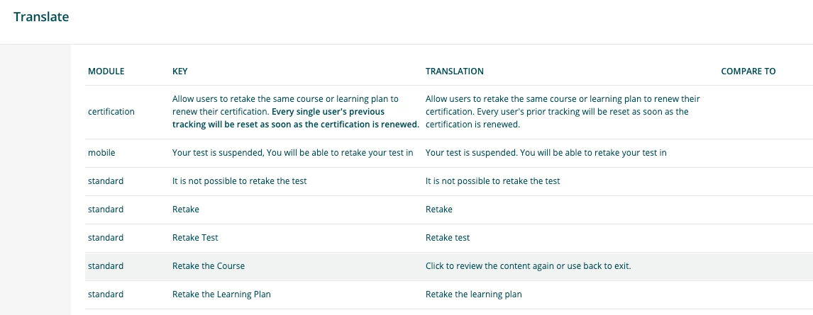 Question: How do I allocate the specific language for the certification courses identified as modules (see image) in the Localization Tool.