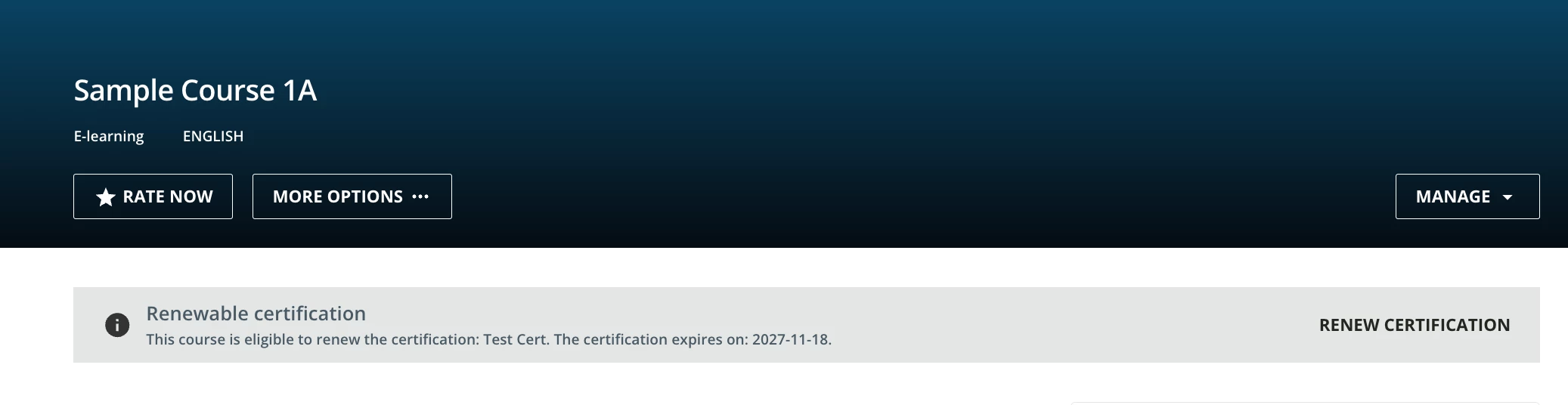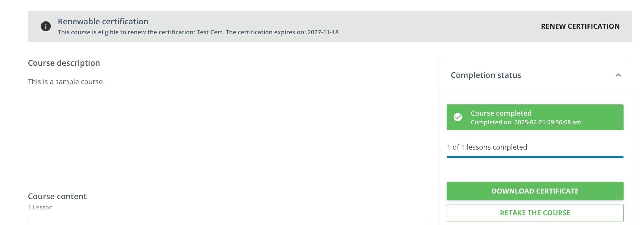What I have now realised is I need the widget Retake this lesson to state Click “Renew Certification” at the top corner for courses identified as Certification only