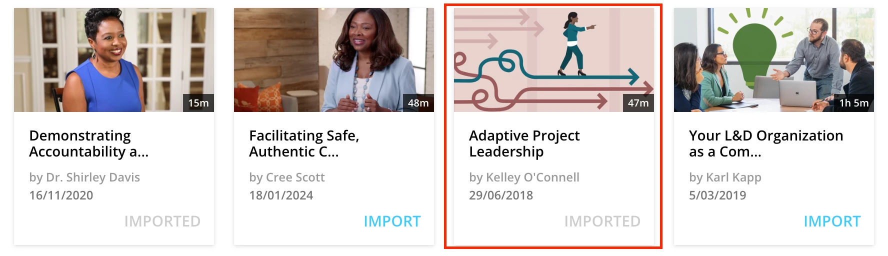 The only way I identified is to manually delete courses from both the course catalogue and repository before re-importing them in the marketplace. Otherwise, courses are indicated as imported, and you can’t take any actions.  Is there a more straightforward way for us to update the courses without doing it one by one?