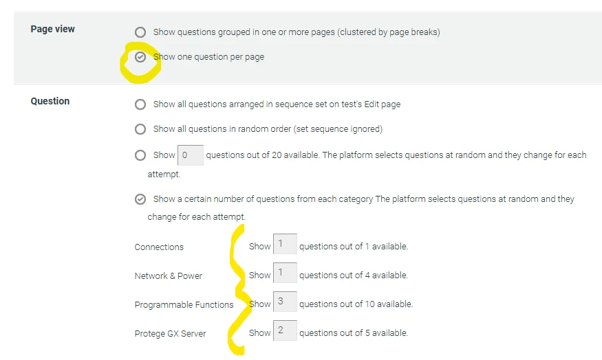 - Category A: Show 60 out of 60 questions (the fixed questions, shown at every attempt although in random order)