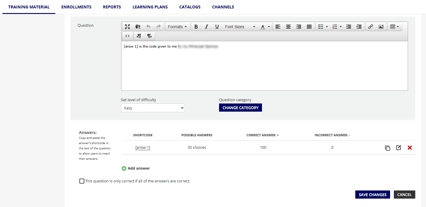 I didn’t check the box at the bottom “This question is only correct if all of the answers are correct” because there are not multiple Blanks. BUT I wonder if selecting that box will correct the problem...can you confirm?