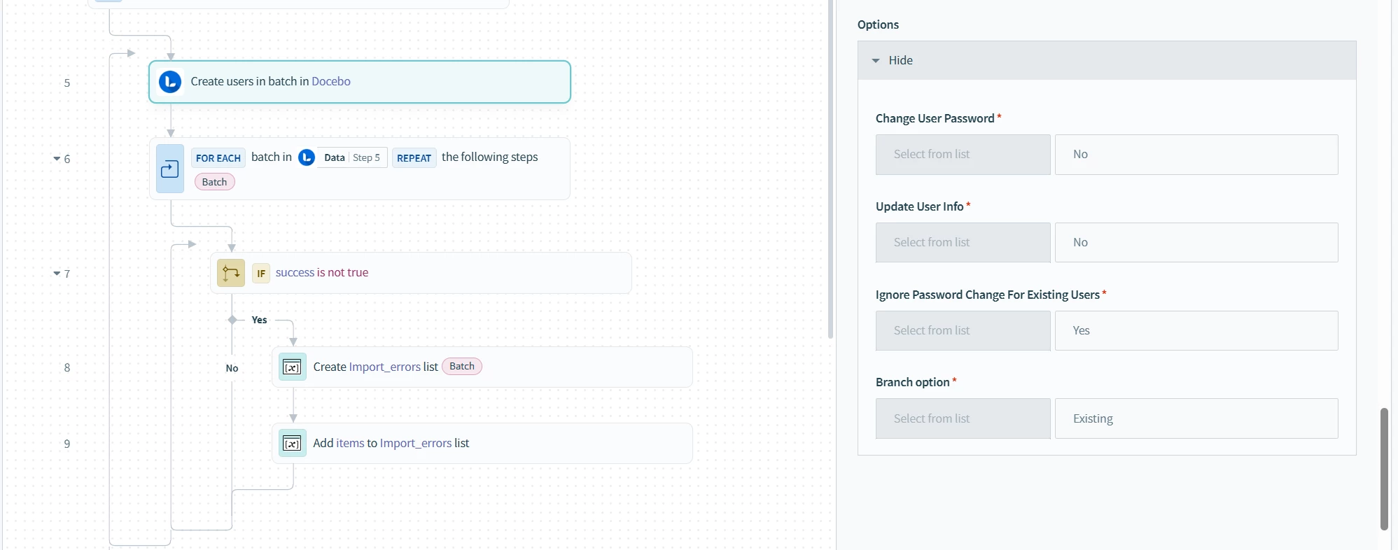 I am working on a Connect RAAS recipe for creating users from UKG to Docebo. On the step for Create Users in batch in Docebo. How do I answer the following questions, if we are using OKTA SSO for logins to Docebo?