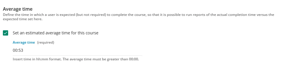 From there the videos end up in the Courses. The courses have a field to define the “Average time”