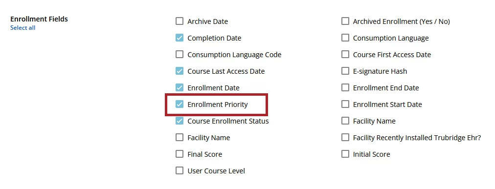 We are using Enrollment Priority Attributes for some assignments. We would like to know if the attribute designation (e.g., required, mandatory, optional, recommended) that is applied when the course is assigned appears anywhere in records. We know it appears on the home page on the assigned course’s tile, but we would like to see it in a report, or some other place we could pull data from. Perhaps there is an API that would expose it?