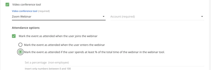 In the Teams Webinar, I want to mark the event as attended if the user spends at list 70% of the total time of the webinar in the webinar tool.