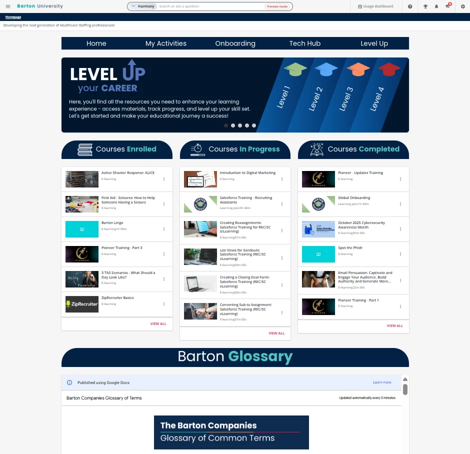 When I stepped into my role, our LMS was already built—but it focused on functionality over look and feel. My goal has been to create pages that better organize the large volume of information in our central repository, starting with the homepage (and make it look pretty lol). There’s still a lot to learn and unlock within the platform when it comes to what’s possible from a design and UX standpoint, and this series documents that journey.